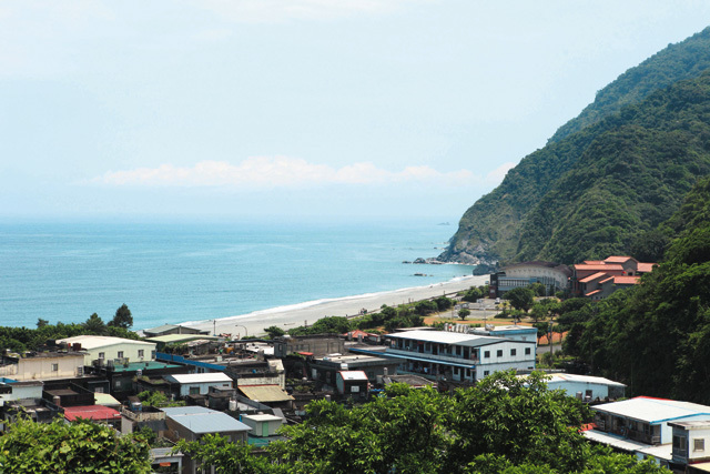 ▲由高處往下看,搭配著漁村的小屋,內埤海灘顯得更加清閒幽靜了。