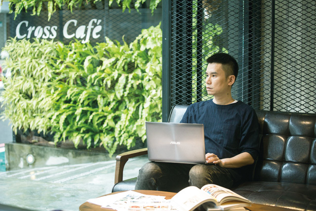 走進Cross Café克勞斯咖啡店,杜政哲熟稔地跟店員們打招呼,這裡曾是《16個夏天》的拍攝場景,第一次來是製作人們約在這裡討論,還沒開始拍,劇本也還沒寫,他發現這裡的氛圍很舒服,不論是音樂、人,還是咖啡,「我是一個很懶的人,一旦對這個地方產生依賴感就會很常來。」後來Cross Café變成靈感發想的地方,變成劇中的場景,也變成他生活中的一部份。