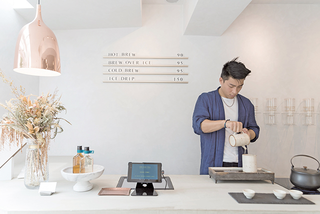 十間茶屋是由Franco和Brenda兩人一起創立的茶葉品牌,Franco家中世代從事茶葉相關事業,身為第五代接班人,有感傳統茶文化逐漸消失,決定以新穎姿態和更多人分享台灣好茶,經過兩年時間籌備,十間茶屋坐落在松菸旁,純白玻璃屋帶給人清新的感受,現有的三位茶師都經過嚴謹的訓練,不只手藝純熟,更樂於與客人分享茶知識,店內精選12支茶葉,以00、05、10代表初、午、暮 三種不同的發酵烘焙程度,沖泡方式則有熱泡、熱沖冰、冷泡及冰滴四種,其中以威士忌瓶裝的冷泡系列非常受歡迎,不只外觀吸引人,使用小口徑的瓶裝更能細細品嚐茶湯的韻味。