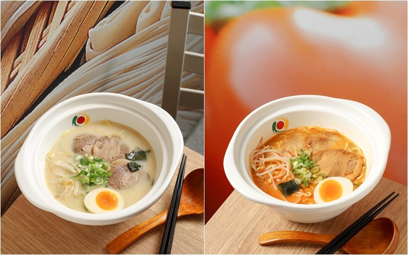 ▲赤炎地獄味噌150元(右)/選用精心發酵過的紅味噌,打造微辣新口感。勝十蘭招牌豚骨120元(左)/高CP值的價格,即是節省人力的呈現。